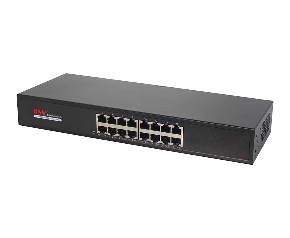 The ONV-H3016B is a Gigabit Ethernet switch independently developed by ONV. It has 16*10/100/1000M adaptive RJ45 ports, and a non-blocking full-duplex transmission rate to achieve convenient network connection and expansion. Each port can support full-line speed forwarding, and 4.1M large-capacity cache ensures timely transmission of large files and stable video streaming, 7*24 hours without disconnection, effectively solving video freezes and picture loss in high-definition monitoring environments. It is suitable for hotels, banks, campuses, factory dormitories, and small and medium-sized enterprises. Plug and play, no configuration and simple and convenient use is the choice to improve network performance.
