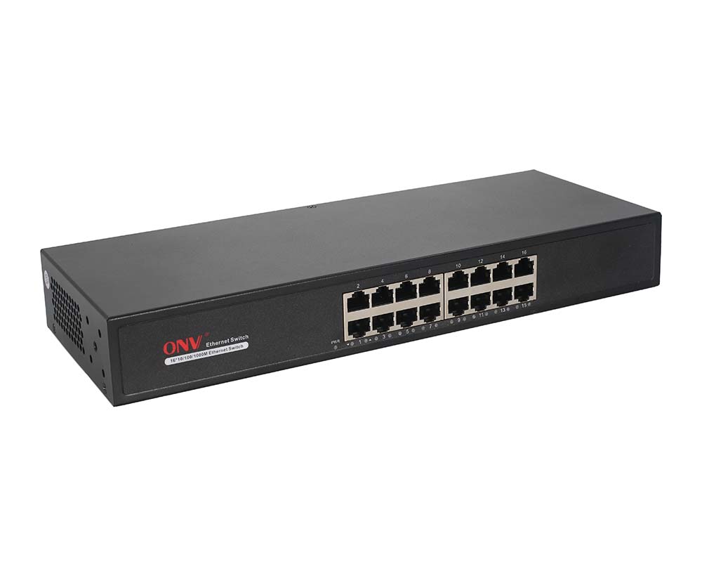 The ONV-H3016B is a Gigabit Ethernet switch independently developed by ONV. It has 16*10/100/1000M adaptive RJ45 ports, and a non-blocking full-duplex transmission rate to achieve convenient network connection and expansion. Each port can support full-line speed forwarding, and 4.1M large-capacity cache ensures timely transmission of large files and stable video streaming, 7*24 hours without disconnection, effectively solving video freezes and picture loss in high-definition monitoring environments. It is suitable for hotels, banks, campuses, factory dormitories, and small and medium-sized enterprises. Plug and play, no configuration and simple and convenient use is the choice to improve network performance.